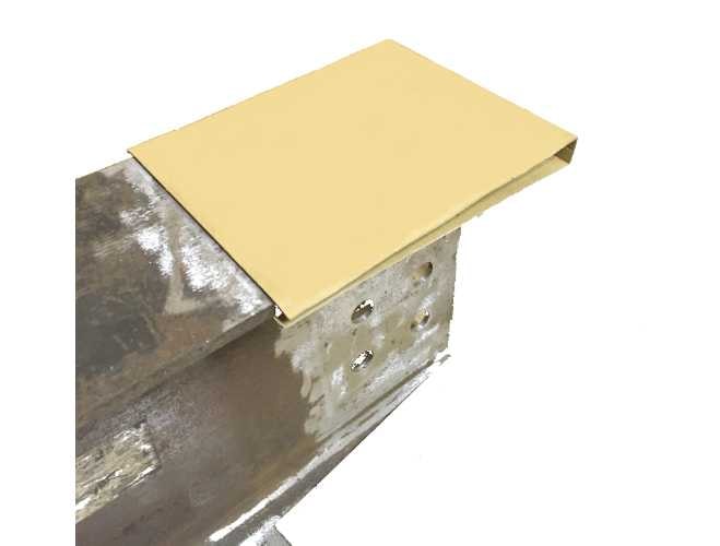 当社が独自開発した鉄骨マスキングカバー『ペッタンコ®』です。鉄骨の結合部分のボルト・ネジ部分に塗装が付着するのを防ぎます。面倒なテープによるマスキング作業が軽減されます。実用新案登録製品です。